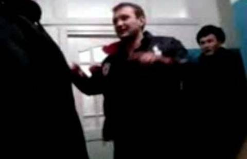 Регулярно в комнату наведывается, видимо, друг крутого парня. Он более агрессивен, кроет матом служивых, грубо толкает их. Это хорошо видно на двух роликах, выложенных на YouTube.