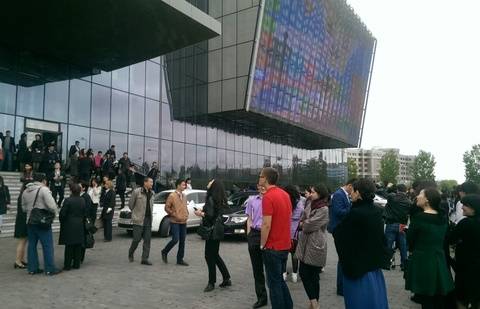 Объявление об эвакуации прозвучало по громкой связи прозвучало в 11.35. В это время в Службе центральных коммуникаций при Президенте, находящейся в здании Казмедиацентра, проходил традиционный брифинг с участием профессоров Академии госуправления.