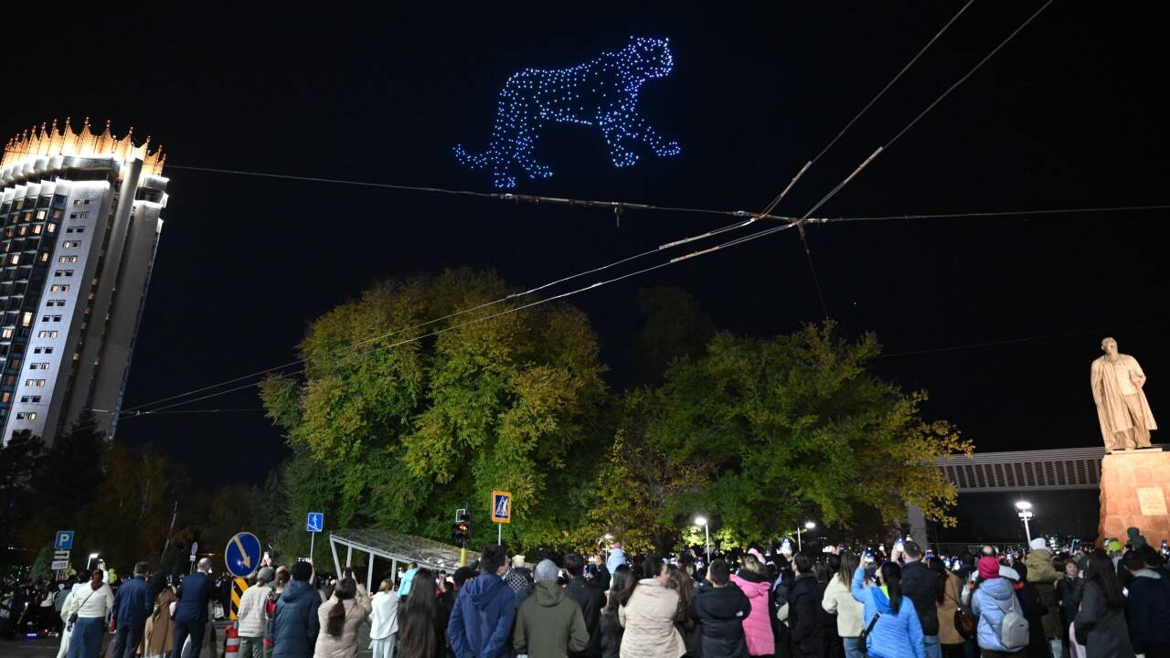 Жители и гости города увидели легендарные символы: Алтын Адам, тюльпан – символ уникальной флоры Алматы, величественного снежного барса и знаменитое алматинское яблоко – апорт, а также силуэт города с его знаковыми зданиями и горами.