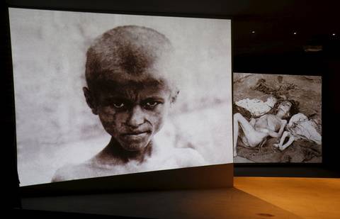 На фото: исторические фотографии о массовых убийствах армян в Османской империи представлены в Цицернакаберд Мемориале жертв Геноцида армян в Ереване.