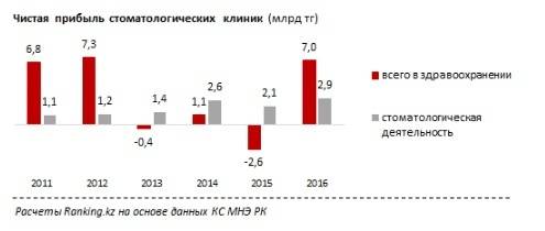 Стоматологи Казахстана заработали за 2016 год почти 3 млрд тенге чистой прибыли. Это рекордный размер чистого финансового результата в стоматологической деятельности в республике за последние пять лет, сообщает Ranking.