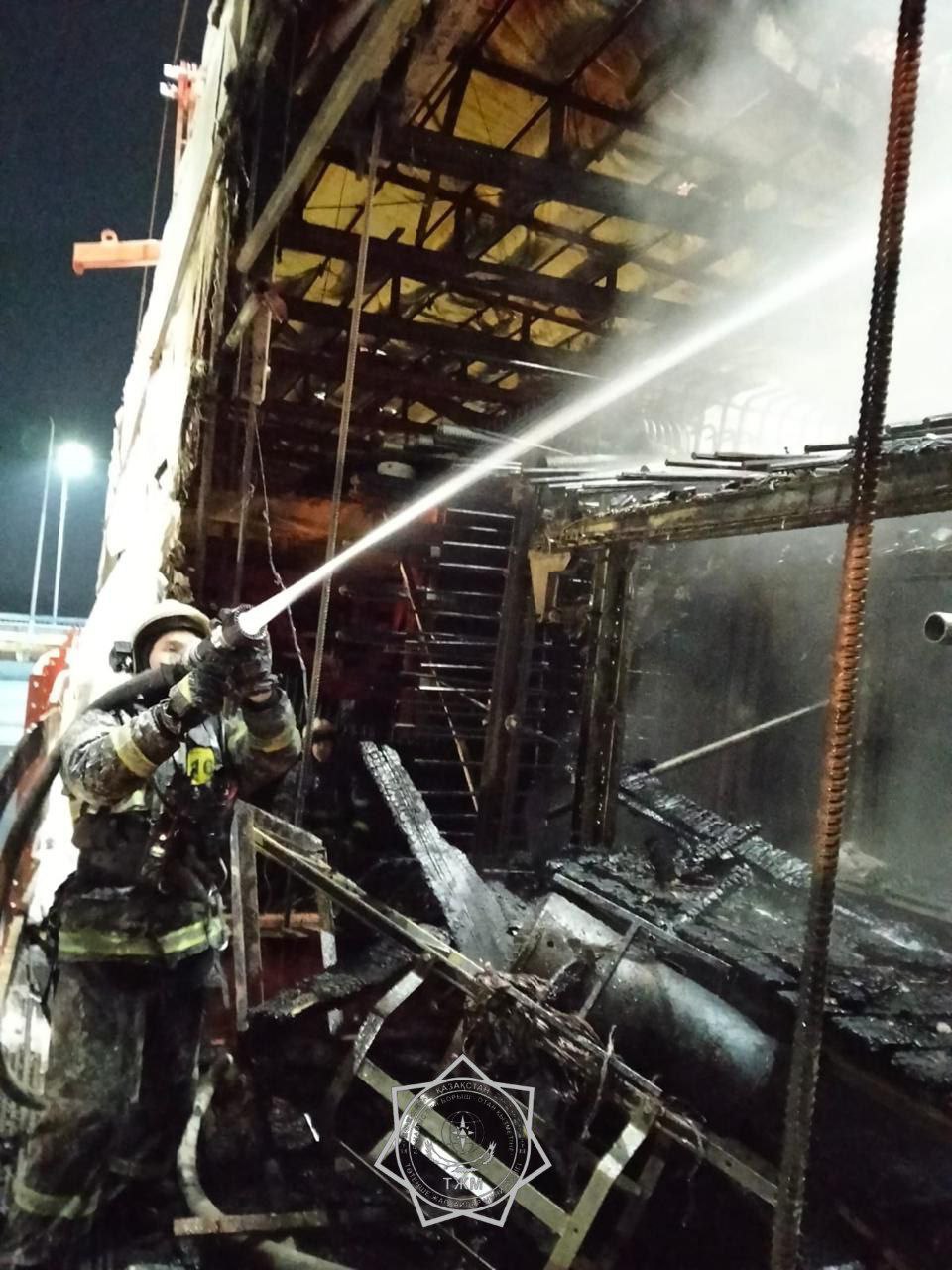 Выяснилось, что горит утеплитель и деревянные элементы опалубки. Очаг пожара находился на высоте около 30 метров над землёй. Несмотря на сложные условия, огнеборцам удалось быстро локализовать и ликвидировать возгорание.