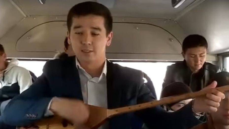 На видео можно наблюдать, как один из пассажиров неожиданно для всех достаёт гитару, а двое его друзей начинают играть на домбре и петь о мамах, бабушках и сёстрах.