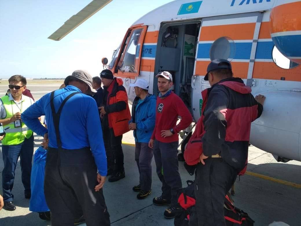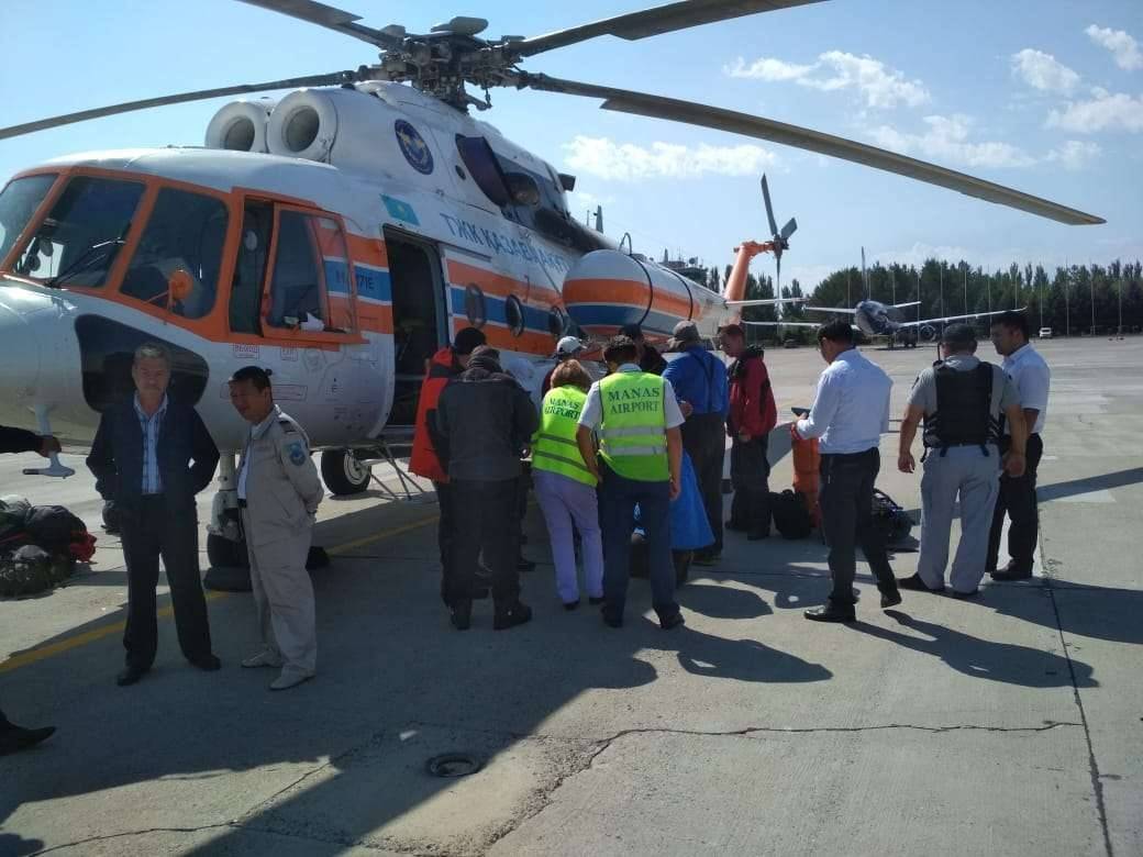 Утром 31 июля вертолёт эвакуировал пострадавших и погибшего альпиниста с ледника и приземлился в аэропорту "Манас" столицы Кыргызстана".