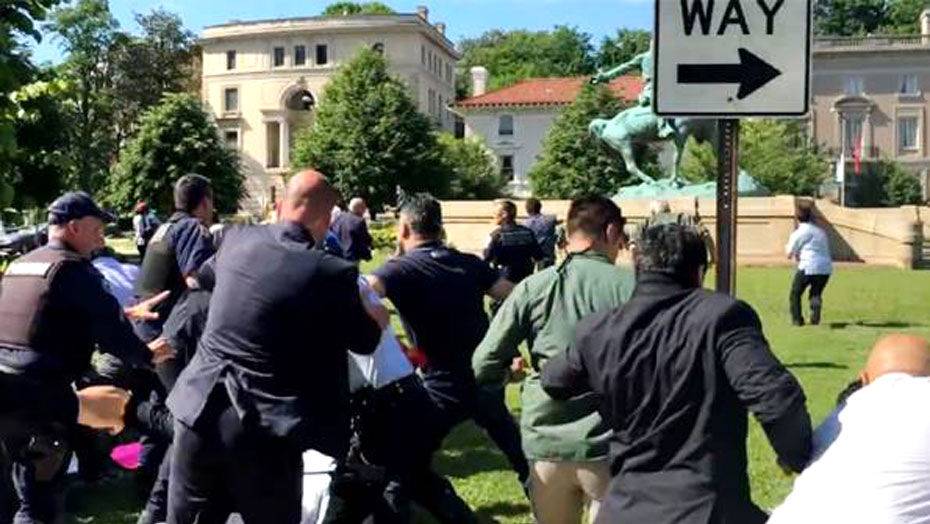 Издание The Washington Post сообщает, что полиция Вашингтона сейчас работает вместе с сотрудниками Госдепартамента США, чтобы установить всех участников инцидента. В то же время телеканал NBC News, сообщил, сославшись на официальных лиц, что мужчины, избивавшие демонстрантов, оказались охранниками Эрдогана.