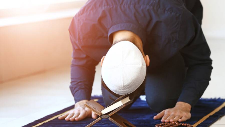 На кадрах видно, как два человека, лица которых скрыты балаклавами, читают намаз на молельном коврике, а рядом лежат дубинки. Ещё один человек сидит поодаль.