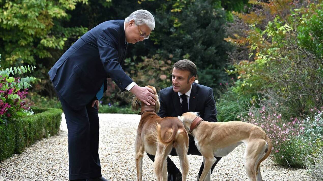 Борзые, которые получили клички Жюль и Жанна, были подарком Касым-Жомарта Токаева французскому лидеру.