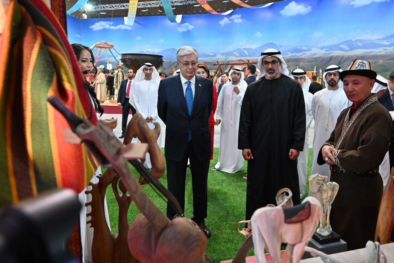 Президент Казахстана Касым-Жомарт Токаев и наследный принц Абу-Даби шейх Халед бен Мухаммед бен Заид Аль Нахаян посетили выставку "Этноаул", сообщила пресс-служба президента.