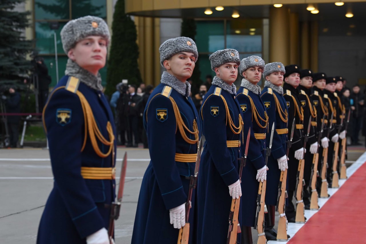 В аэропорту Внуково-2 в честь высокого гостя выстроилась рота почётного караула и военный духовой оркестр.