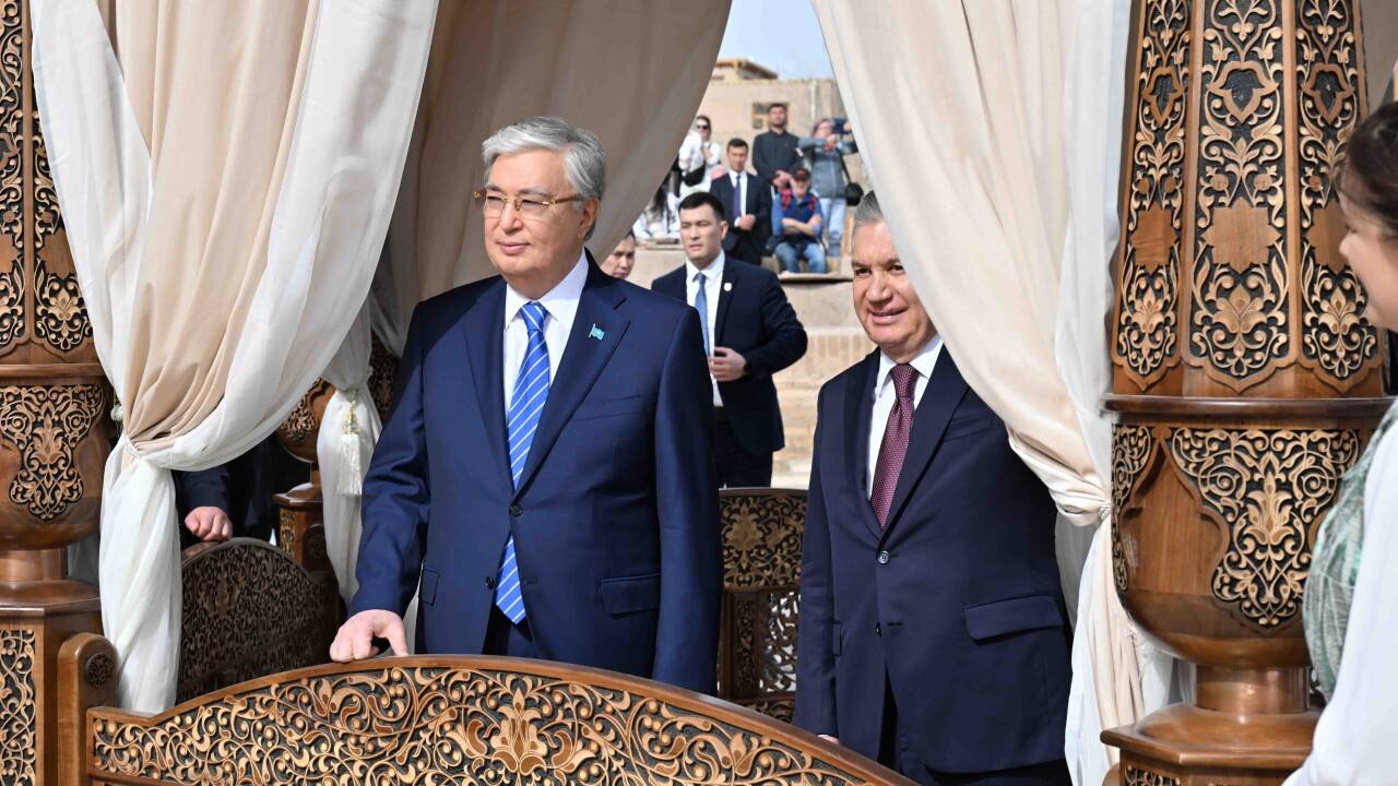 Касым-Жомарт Токаев и Шавкат Мирзиёев также побывали в одном из уникальных памятников хорезмийской архитектуры – Дворце Нуруллабая.