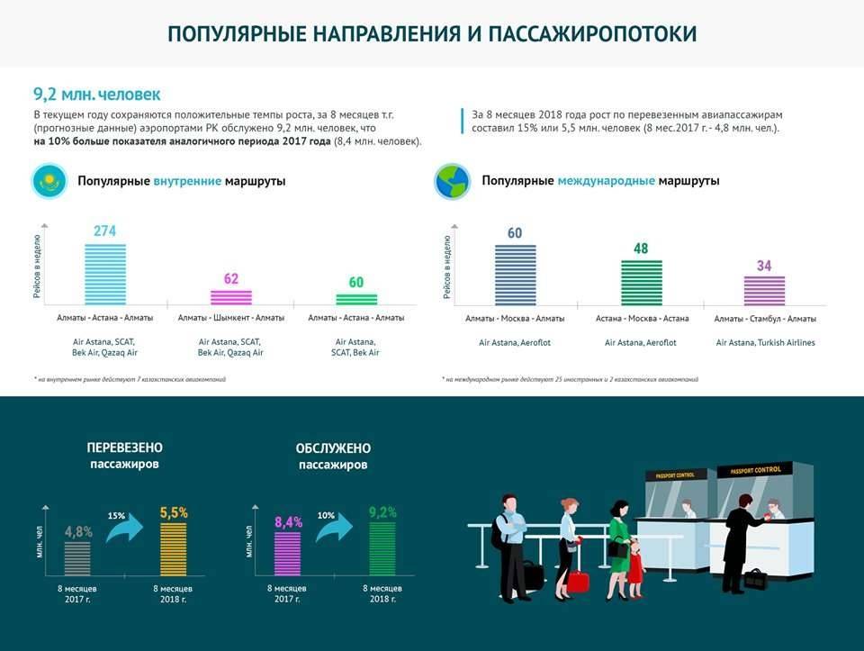 На международном рынке пассажирских авиаперевозок Казахстана действуют 25 иностранных и две казахстанские авиакомпании.