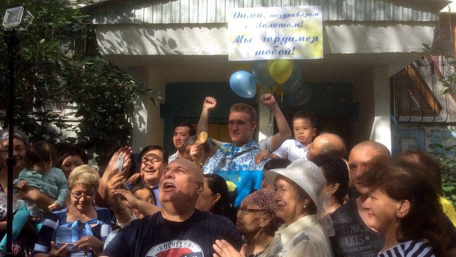 Жильцы двора в микрорайоне Орбита, где живёт олимпийский чемпион по плаванию Дмитрий Баландин, встали пораньше и отложили все дела, чтоб встретить соседа, прибывшего сегодня с несколькими пересадками из Рио в Алматы.