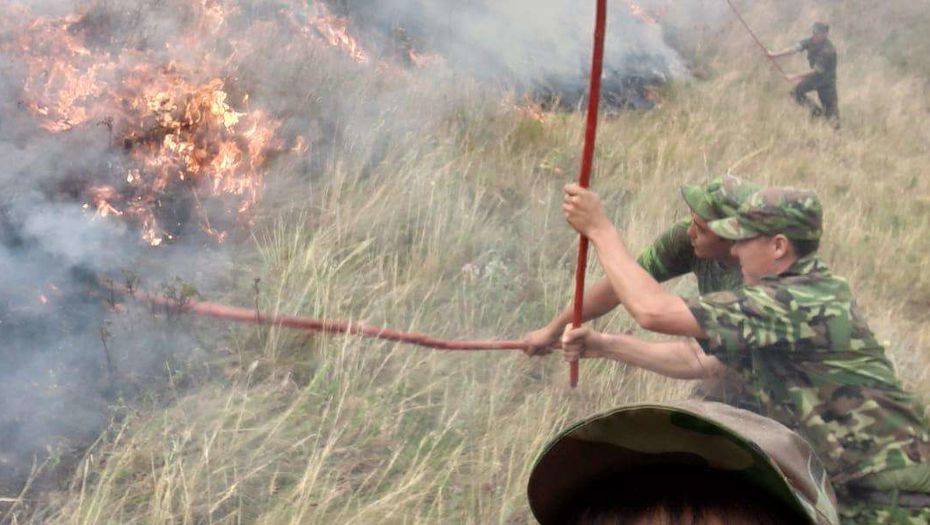 На месте пожара находятся более 13 единиц спецтехники и 59 человек личного состава ДЧС и Департамента полиции Алматинской области, а также Жаркентского государственного лесного учреждения.