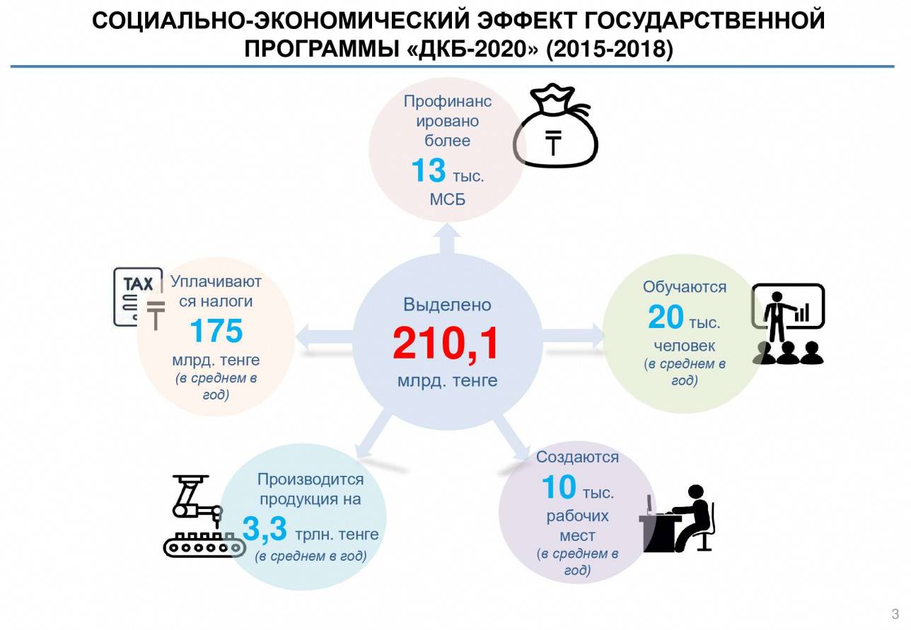 Заслушивание отчёта о ходе реализации госпрограммы "ДКБ – 2020" прошло в партии Nur Otan 16 апреля. Руслан Даленов, глава Министерства национальной экономики, ответственного за реализацию программы, сообщил, что за последние четыре года на её реализацию из республиканского бюджета выделили 210 млрд тенге.