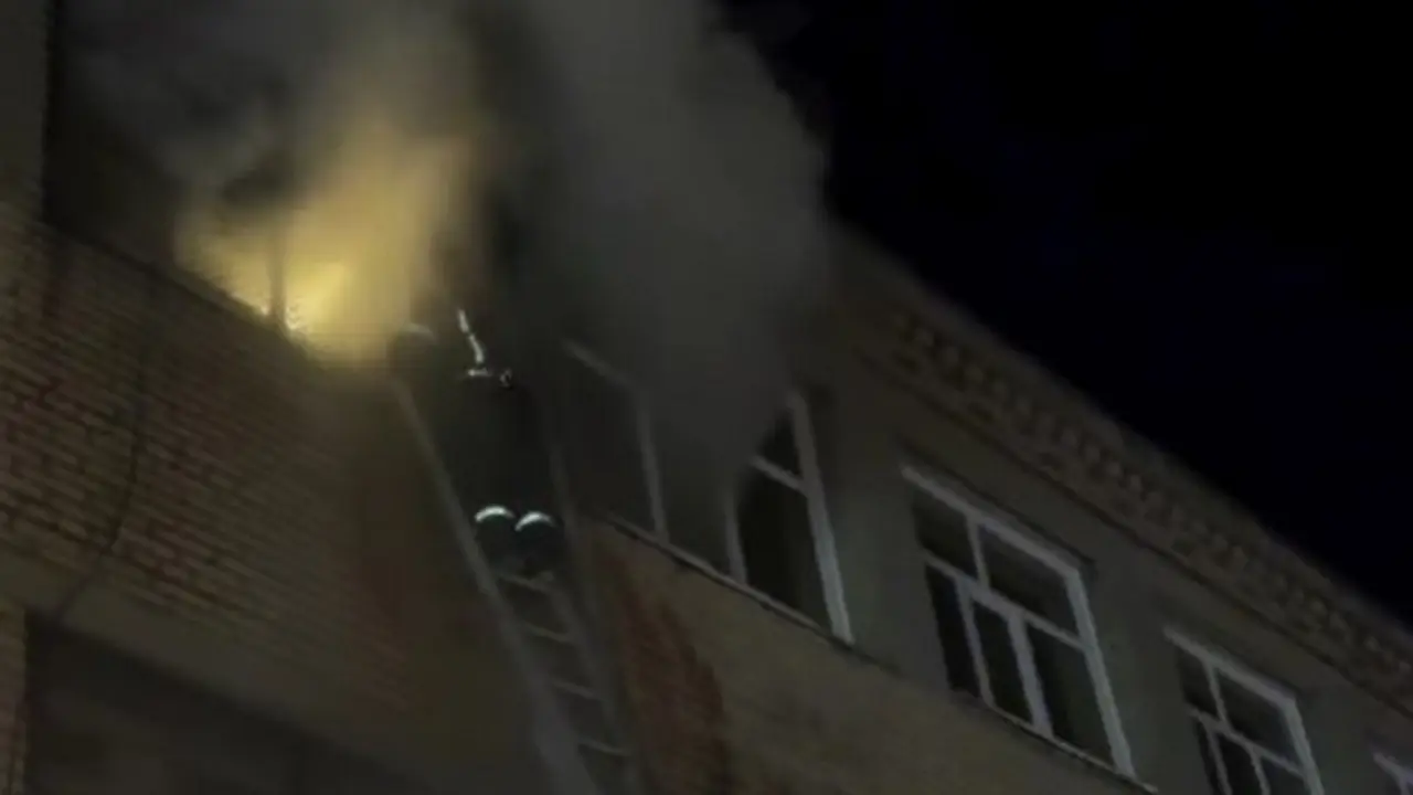 Когда пожарные прибыли на место, из окна верхнего этажа здания шёл густой дым, вырывались языки пламени.
