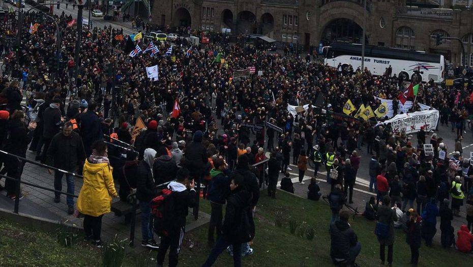 В Германии в Гамбурге тысячи человек устроили митинг в поддержку беженцев, которые пытаются попасть в страны Евросоюза через турецко-греческую границу, сообщает DW.
