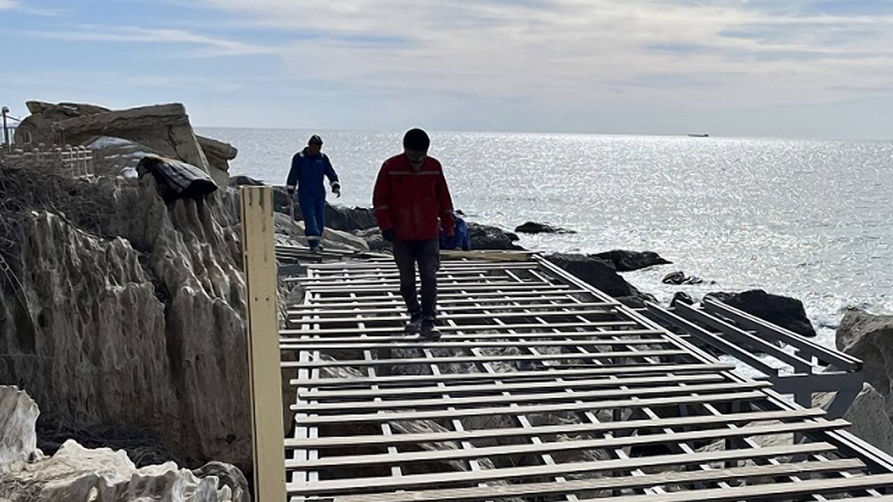 В Актау участок туристического объекта "Скальная тропа" перестраивают после недавнего разрушения, сообщает "Лада".