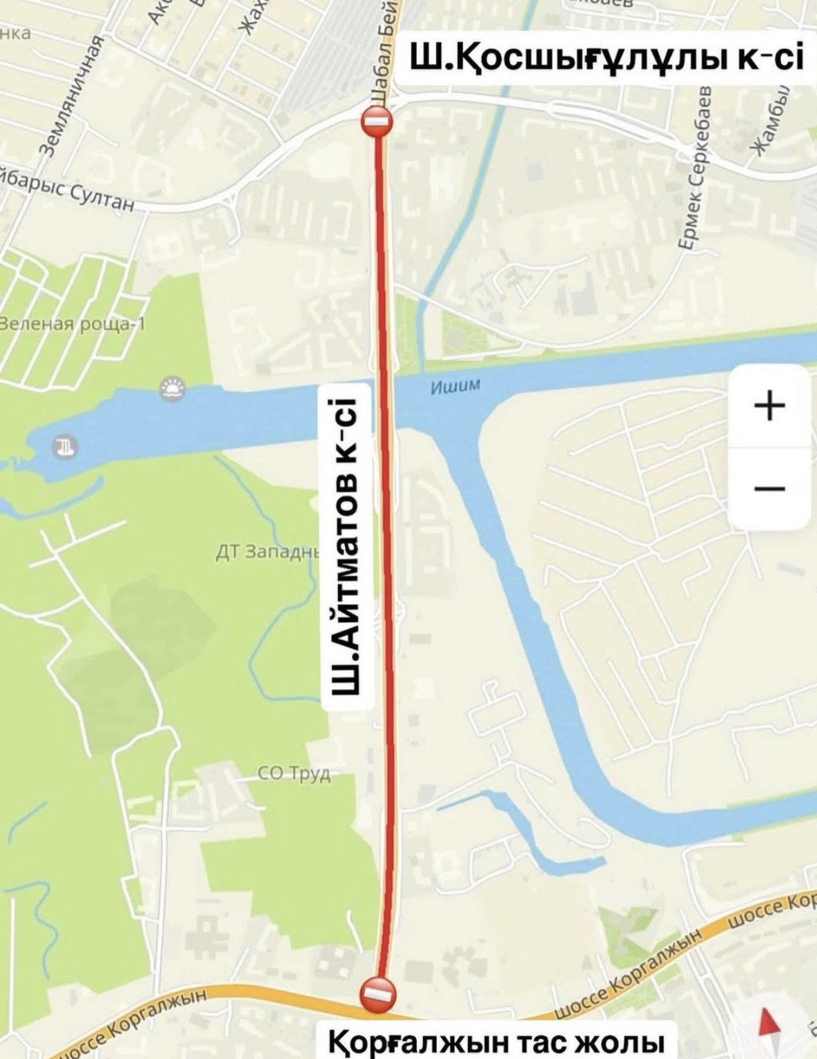 На отрезке улицы от Коргалжынского шоссе в сторону улицы Косшыгулулы проведут работы по укладке верхнего слоя дорожного покрытия. Движение для авто организуют только в одном направлении – от улицы Косшыгулулы в сторону Коргалжынского шоссе.