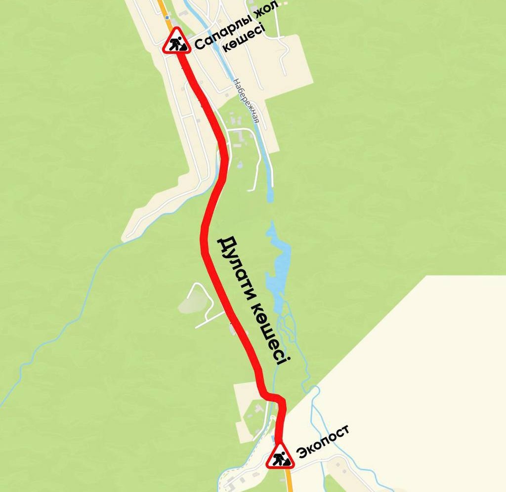 С 22.00 26 июня до 6.00 27 июня движение перекроют от экологического поста до улицы Сапарлы жол.