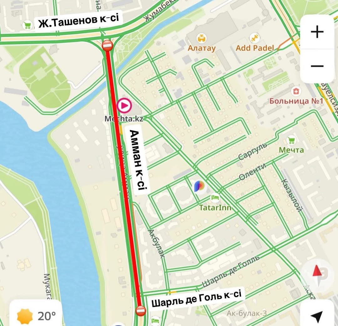 "Информируем жителей и гостей города о начале работ по укладке верхнего слоя дорожного полотна по улице Амман на участке от улицы Ж.Ташенова до улицы Шарль де Голя. В связи с этим с 12 по 16 июля будет частично перекрыто движение на участке. При этом движение автотранспортных средств будет организовано поэтапно в обоих направлениях по одной из сторон", – говорится в сообщении.