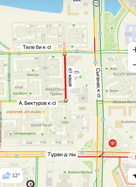 Движение перекроют по улице 67 на участке от улицы Бектурова до улицы Толе би.