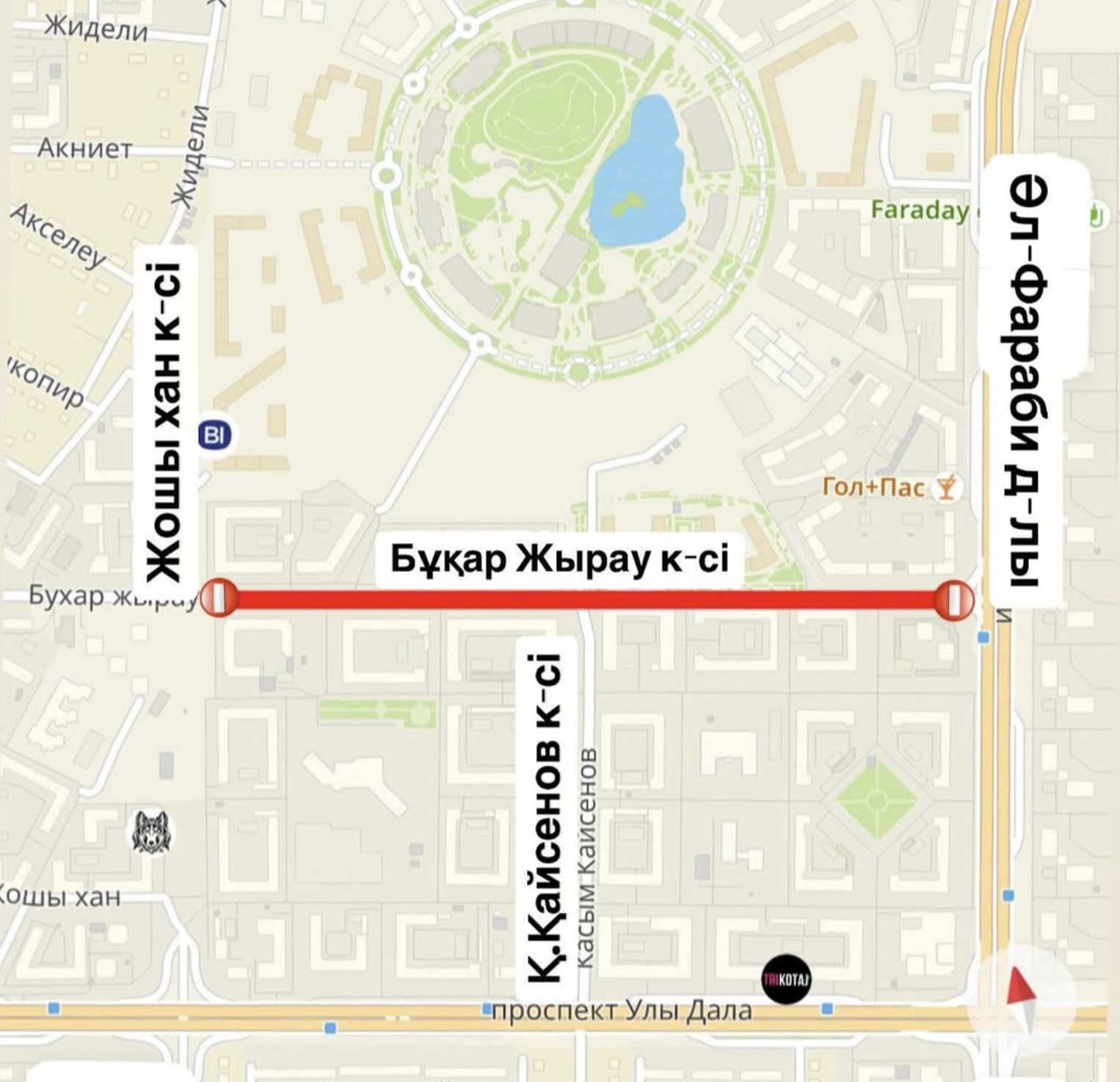 На отрезке от улицы Жошы хана до проспекта Аль-Фараби проведут работы по укладке асфальта. В связи с этим на участке будут поэтапно перекрывать движение до 31 августа.