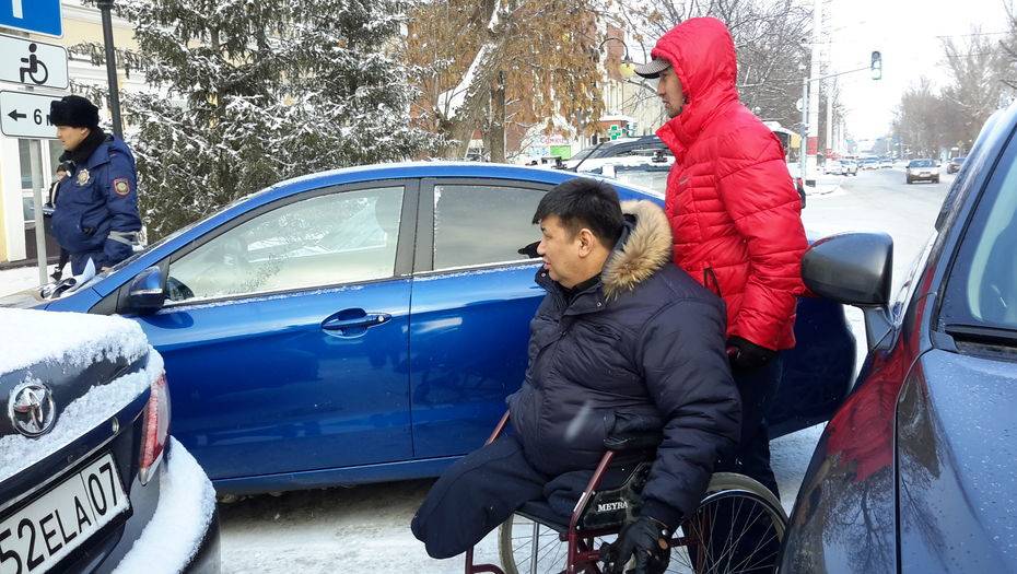 "Из-за того, что водители занимают их парковочные места, колясочникам приходится бросать машины далеко от входа в здание, ехать до тротуара по проезжей части, преодолевать сугробы, бордюры и объезжать арыки. Поэтому мы придумали такой ход. Вместо штрафа, а он, кстати, немаленький – 113 тысяч тенге, мы просили инвалидов-колясочников продемонстрировать, как им приходится добираться до нужного места", - рассказала инспектор МПС УВД г.Уральска Динара Абдулкаликова.