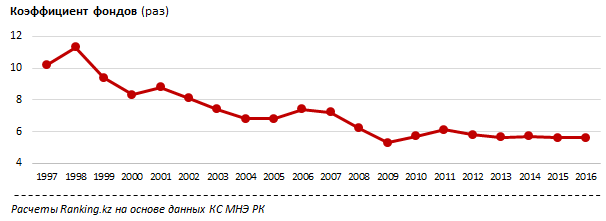 Согласно рекомендациям ООН, показатель коэффициента фондов не должен превышать 8-10. В противном случае расслоение в обществе увеличивается, что резко повышает риск социальных взрывов.