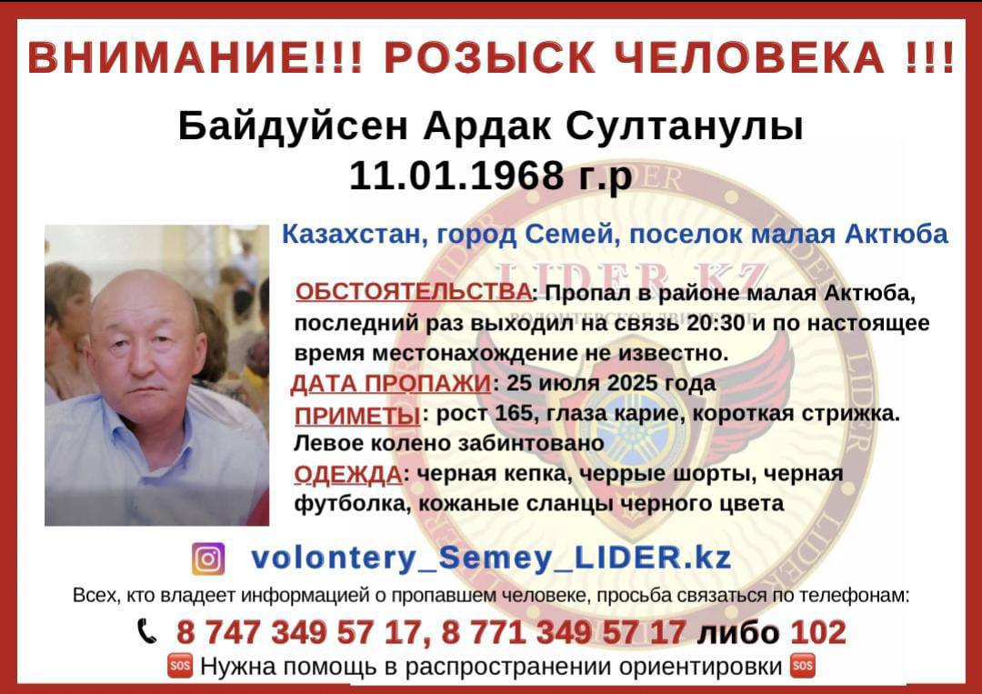 Масштабную поисково-спасательную операцию развернули в Семее. 25 июля там пропал 57-летний Ардак Байдуйсен.