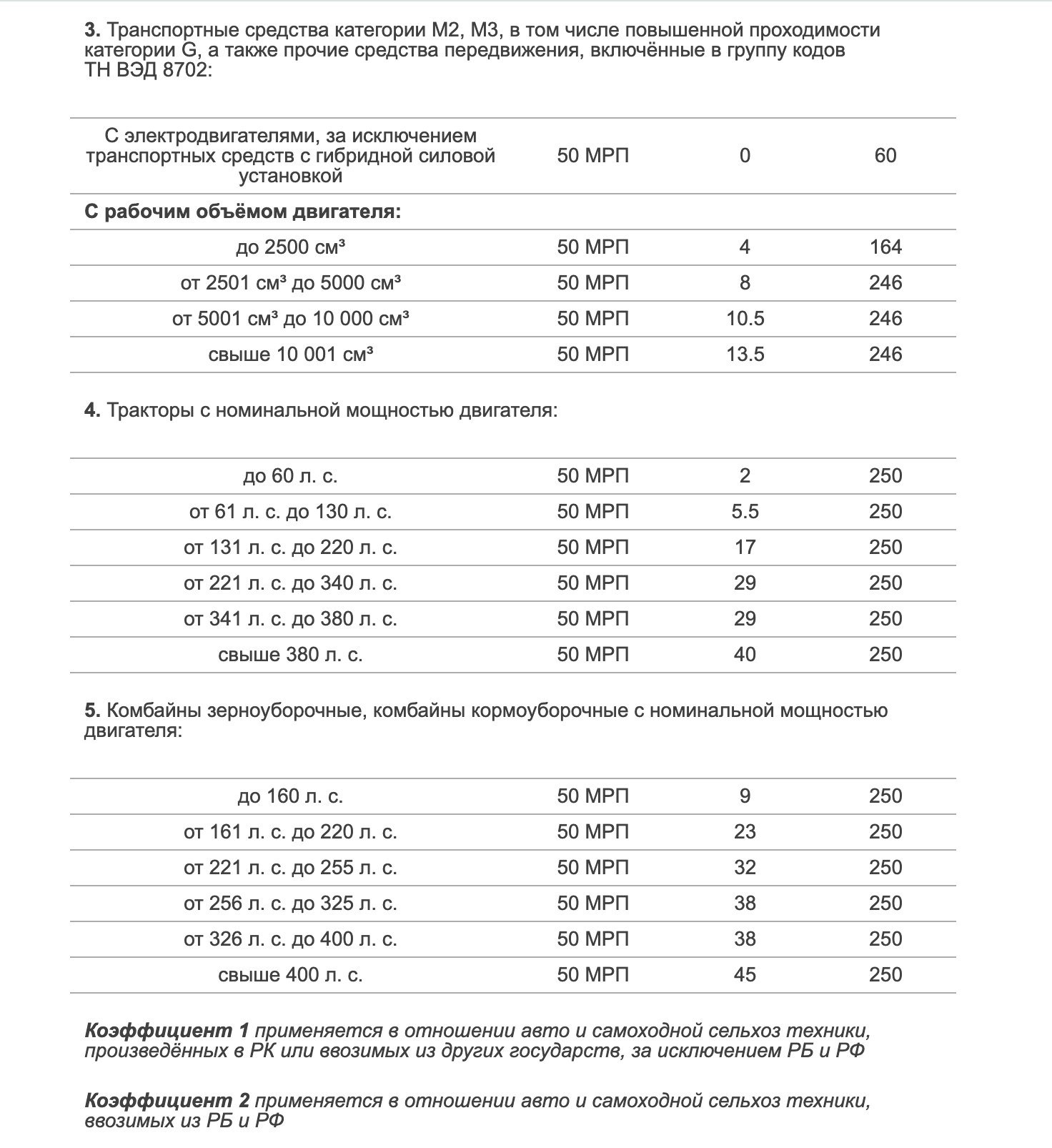 Соответствующий проект приказа разработало Министерство промышленности. Документ предлагает использовать специальный повышающий коэффициент 2 при уплате утильсбора в отношении машин и самоходной сельскохозяйственной техники, которые завозят в Казахстан из Беларуси и России. Ставка сбора для автомобилей, собираемых в нашей стране или импортируемых из государств, не входящих в ЕАЭС, а также из Армении и Кыргызстана, останется на прежнем уровне.