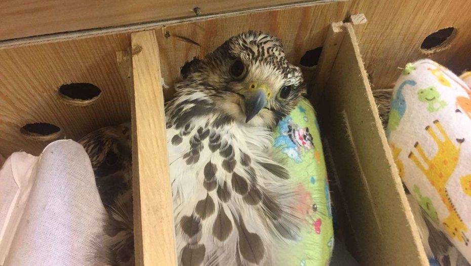 "23 сентября при оформлении международного рейса сообщением Алматы – Шарджа пограничниками у пассажира 1981 года рождения, гражданина Республики Казахстан была выявлена дорожная сумка чёрного цвета, в которой находились семь соколов-балобанов, упакованных в ящики", – сообщили в пресс–службе пограничной службы КНБ РК.
