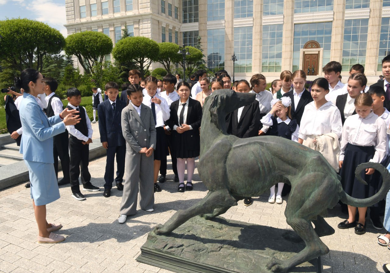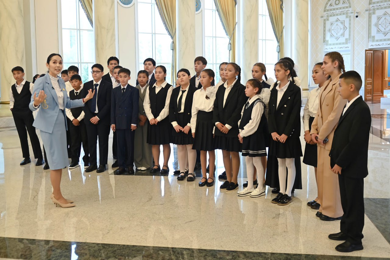 Во время экскурсии школьники осмотрели центральный парадный холл Акорды и залы, предназначенные для проведения официальных мероприятий, библиотеку Главы государства, а также сад на территории резиденции.