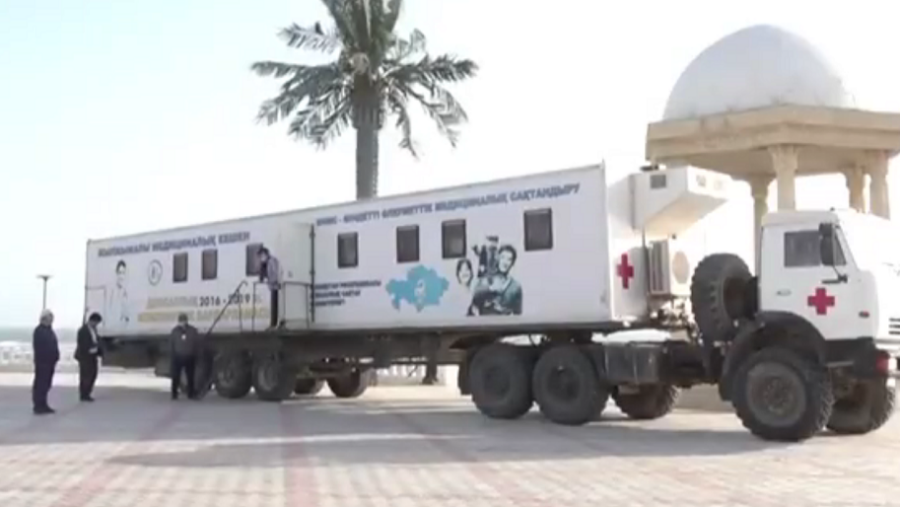 Передвижной пункт вакцинации от Covid-19 появился на набережной Актау, сообщает акимат города.