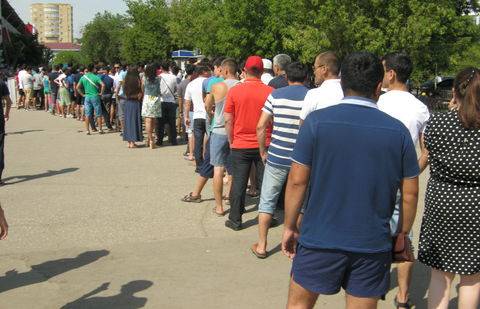 Ажиотаж на стадионе наблюдался с самого раннего утра. Многие очередь занимали еще ночью. Чтобы приобрести билет, люди отпросились с работы и отложили все свои дела.