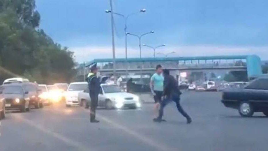 Двое молодых людей подрались прямо на оживлённом участке улицы возле регулировщика движения. Видео с потасовкой появилось на популярной странице eap_kz в Instagram.