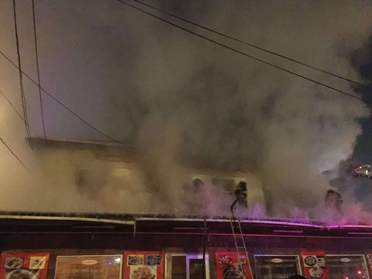 Сотрудники противопожарной службы предварительной причиной пожара называют возгорание кровли одноэтажного магазина.