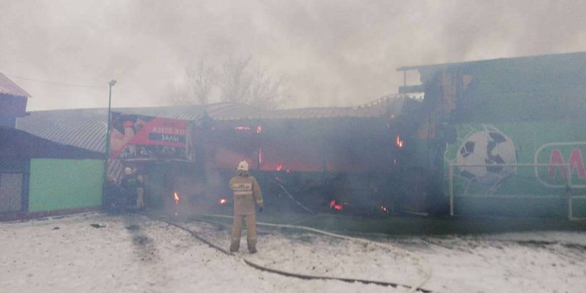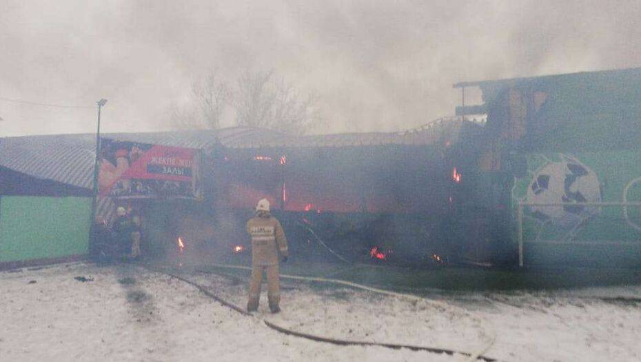 "К моменту прибытия открытым пламенем горел спортзал ангарного типа одноэтажного спортивного комплекса "Медина". Создалась угроза перехода огня на близлежащее административное здание. Незамедлительно поданы пожарные стволы, автоцистерны установлены на гидранты", – сообщил Талгат Уали.