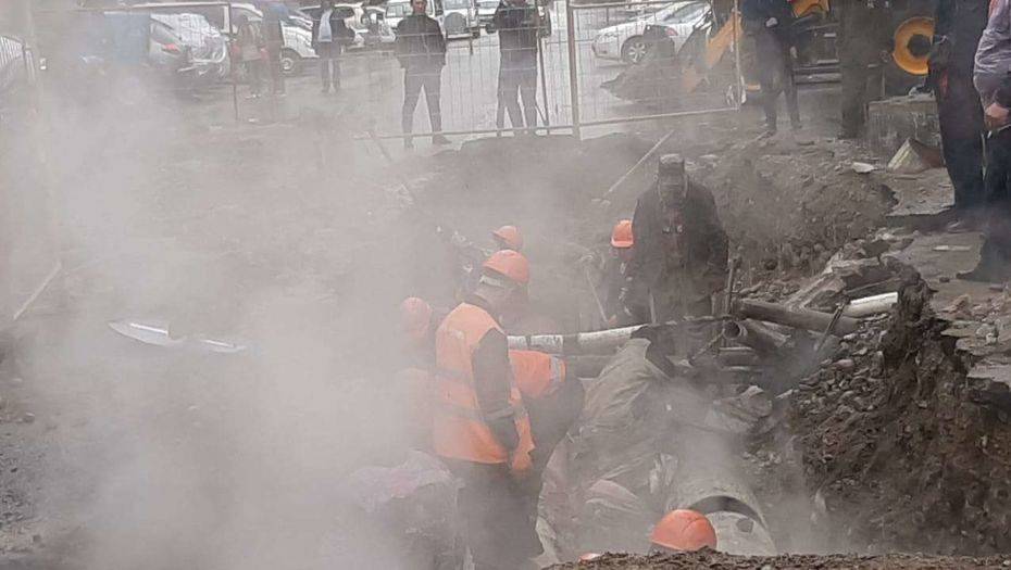 Коммунальщики Алматы ликвидируют последствия порыва старой тепломагистрали на улице Пушкина, сообщает ТОО "Алматинские тепловые сети".