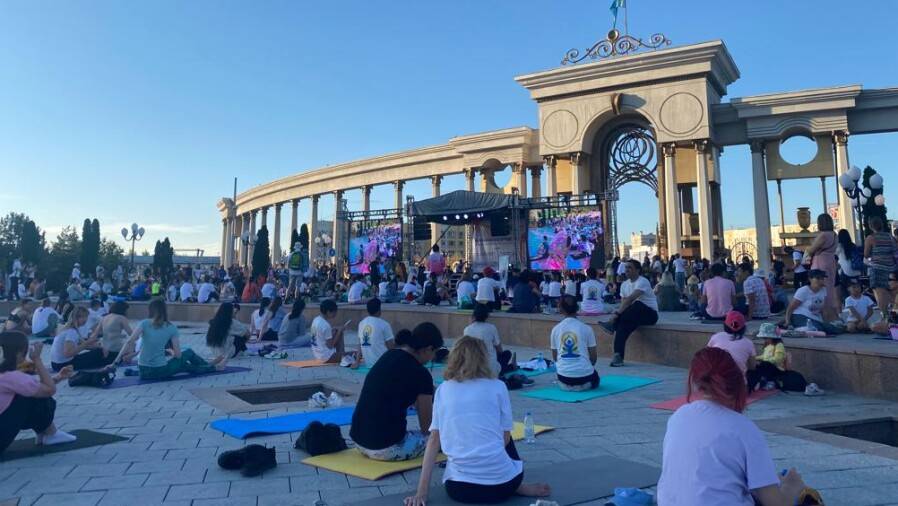 В течение дня на территории Парка Первого Президента выступали профессиональные музыканты и вокальные группы, гостям представили классические индийские танцы, коллективную медитацию и фотосессию.