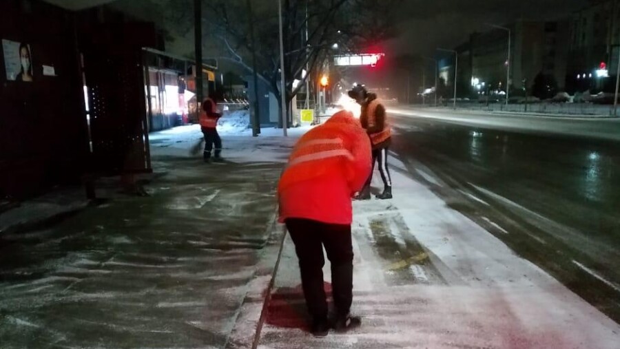 "Ведутся работы по очистке тротуаров, пешеходных зон, остановок общественного транспорта, парковочных карманов. В верхних районах города организованы колонны спецтехники по сгребанию снега с проезжей части дорог. В районных акиматах организованы круглосуточные дежурства по контролю за производством работ по уборке снега", – говорится в информации.