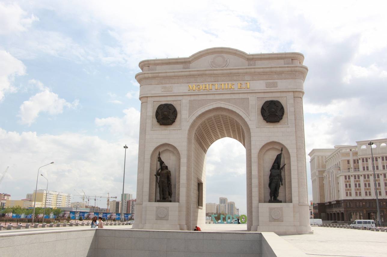 Триумфальная арка "Мәңгілік Ел" была открыта по инициативе Президента Казахстана на 20-летнюю годовщину независимости страны – 16 декабря в 2011 года. Монумент был построен из гранита и мрамора. Архитектором достопримечательности является Сагындык Жамболатов, скульпторами – Мурат Мансуров и Нурлан Далбай.