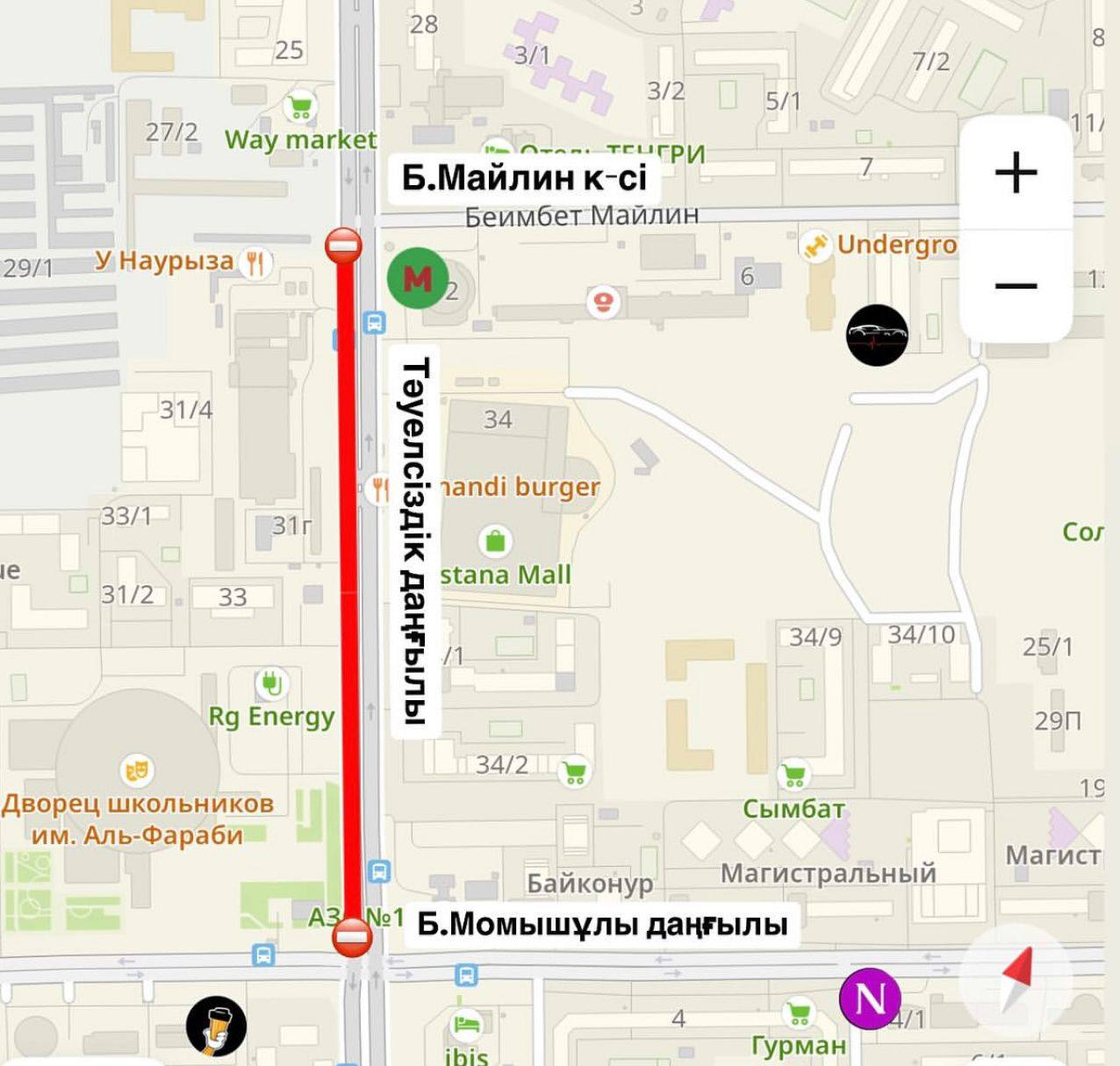 С 24 по 25 мая в Астане частично перекроют движение по проспекту Тауелсиздик – от улицы Майлина до проспекта Бауыржана Момышулы, сообщили в управлении транспорта и развития дорожно-транспортной инфраструктуры города.