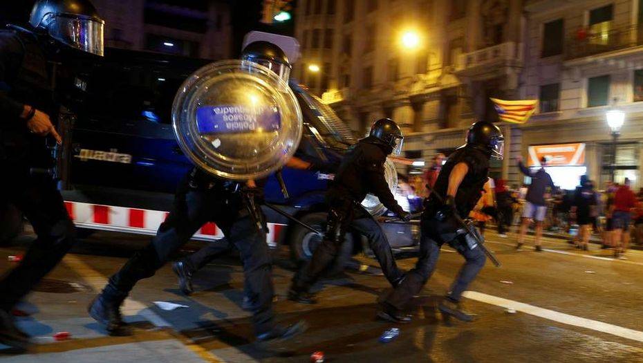 Акция, в которой участвовали различные общественные и политические организации, выступающие за независимость региона, прошла под лозунгом "Восстановим 1 октября". Во время шествия по центральным улицам митингующие устроили погром. Они забрасывали полицейских банками, бутылками, яйцами, обливали краской, сносили железные заграждения. Протестующие выкрикивали лозунги с требованием отставки главы женералитета Кима Торры и советника по безопасности Микеля Буча.