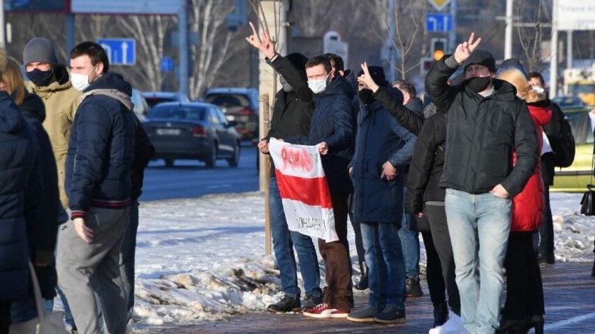 Как сообщает "Sputnik Беларусь", вдоль дорог в Минске выстраивались цепочки людей до 30 человек.