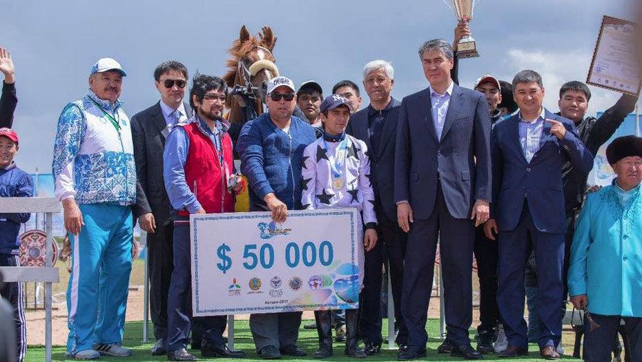Главный приз – 50 тысяч долларов – получил житель Атырауской области, чей скакун Желқанат пришёл к финишу самым первым в аламан-байге.