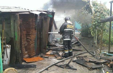 На пульт дежурного информация о возгорании хозпостройки в частном доме за Зелёным базаром поступил в 15.35. На место пожара выехали 3 единицы спецтехники. В хозпостройке находилось большое количество пиломатериала и два газовых баллона. Кроме этого, над горящим зданием проходит магистраль газопровода. Была опасность взрыва и распространения огня на соседние постройки. Силами двух пожарных частей угрозы предотвращены. Площадь пожара составила 20 квадратных метров.