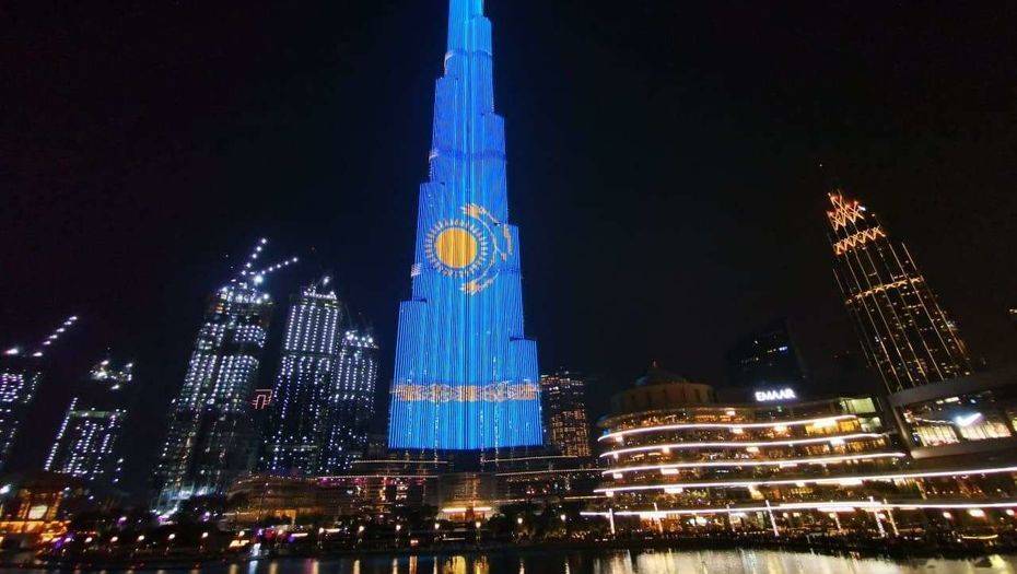 В Дубае казахстанцев поздравили с Днём независимости оригинальным способом. 16 декабря фасад самого высокого здания в мире Бурдж Халифа (Башня Халифа) окрасился в цвета флага Казахстана, сообщает МИД РК.