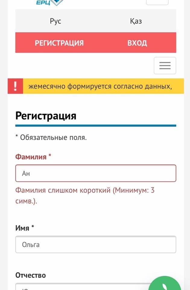В Едином расчётном центре Астаны решили проблему, из-за которой жительница столицы не могла зарегистрироваться на сайте. Сбой возник, когда Ольга Ан попыталась вписать свою фамилию в приложении. Система выдала ей сообщение: "Фамилия слишком короткий".