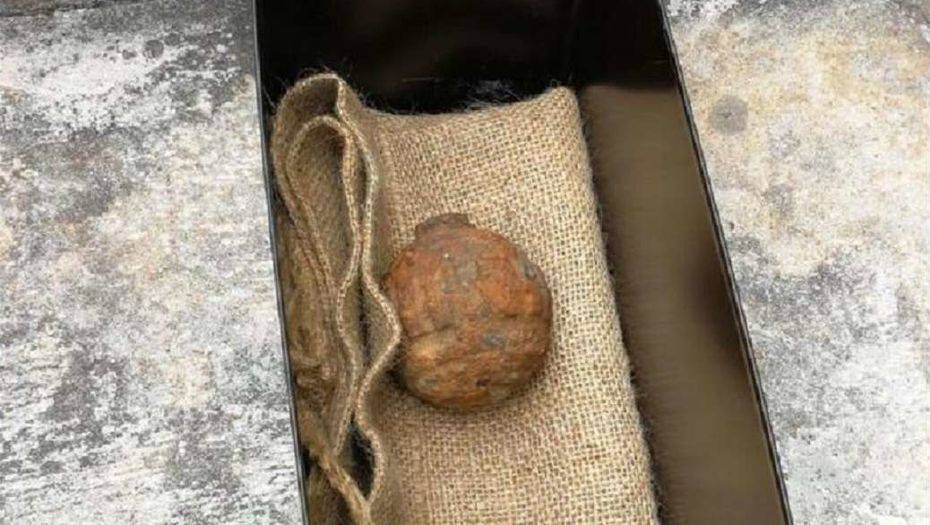 Взрывоопасная посылка беспрепятственно преодолела все пункты таможенного контроля. Гранату нашли получатели груза. Внешне ржавый снаряд напоминает картофель.