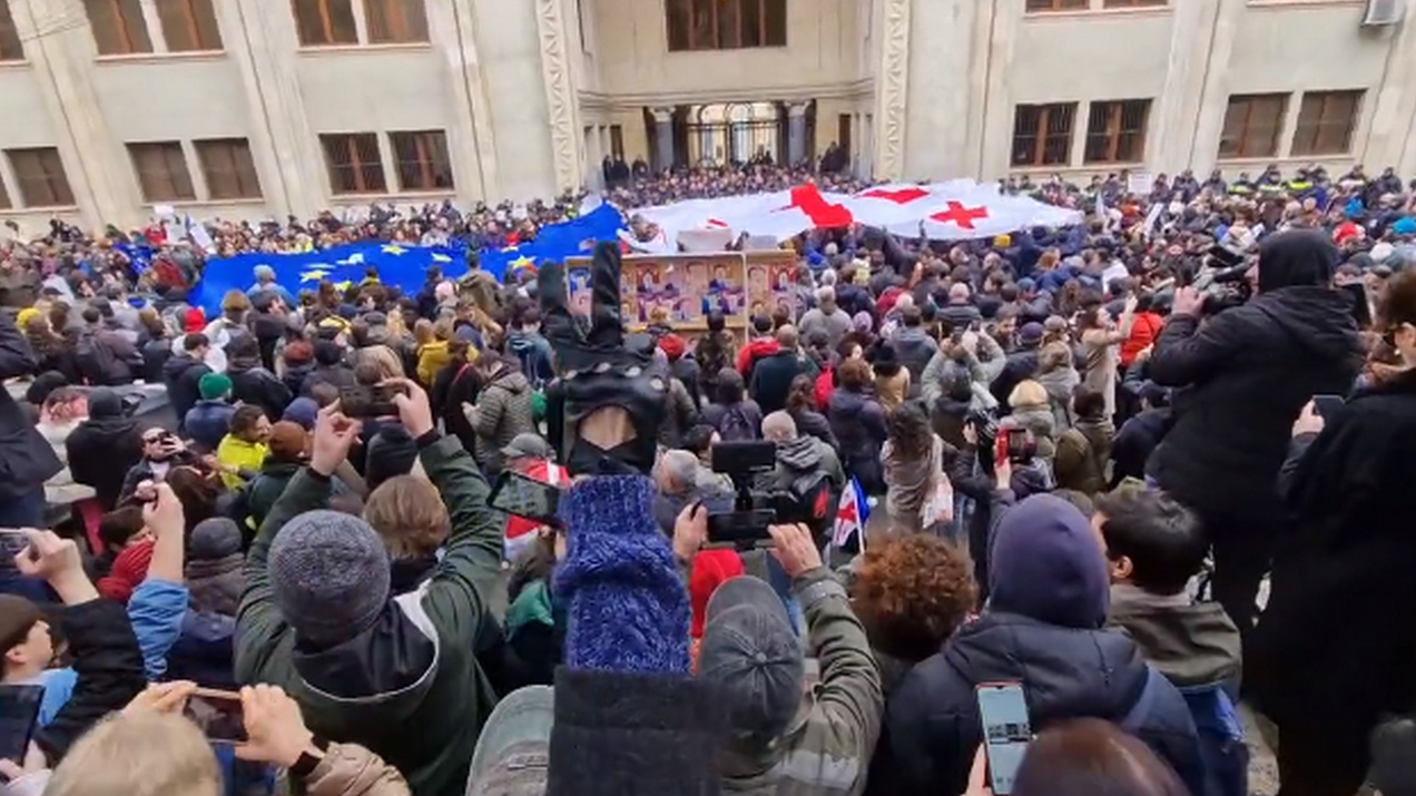 В стране начались акции протеста против принятия закона об иноагентах. 7 марта люди собрались перед зданием парламента.